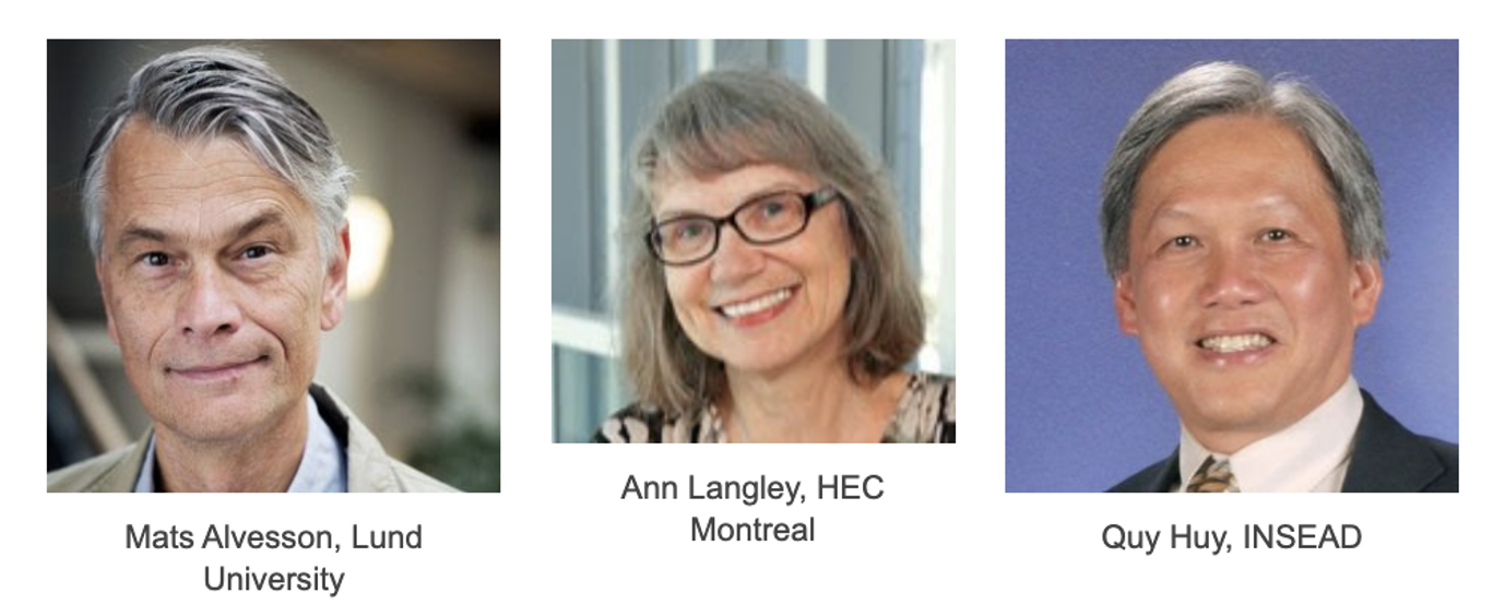 This annual event brings together eminent scholars who share their experiences in the pursuit of both rigor and relevance in research. The Rigor-Relevance Award, sponsored by INSEAD, represents the core values of the Organization Development & Change Division – research that is both highly rigorous and highly relevant. Rigor and relevance are not either/or but a both/and. Join us to hear from this year's awardees – Mats Alvesson (Lund University) and Ann Langley (HEC Montreal) – in conversation with Quy Huy (INSEAD) about how they have achieved both rigor and relevance in their research.